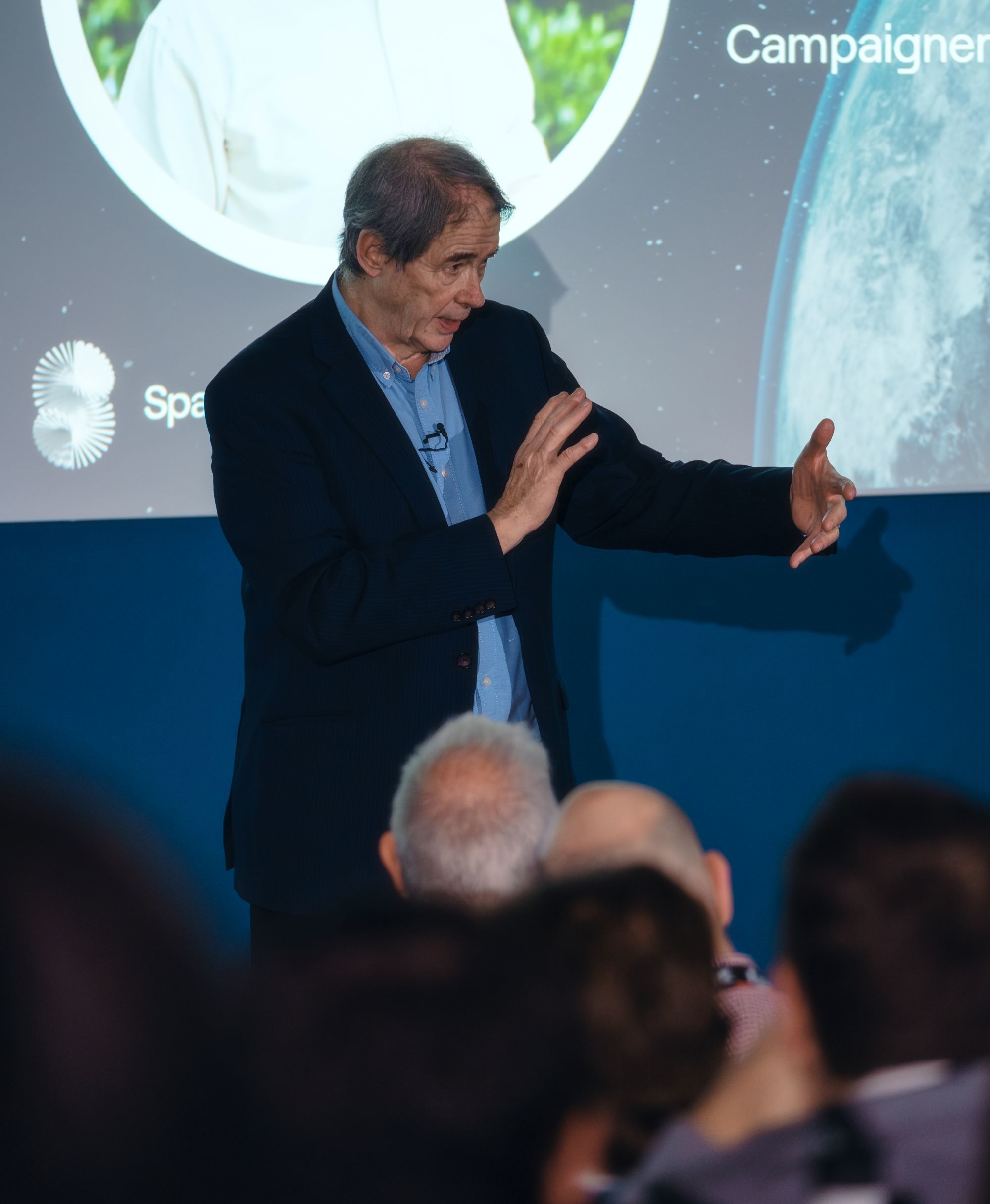 Chris Hines, Owner of A Grain of Sand and Former Sustainability Director of the Eden Project, chaired the event and spoke of upping the pace, with the content of the day reflecting the urgency of the climate crisis. He provided a rundown of the programme and started proceedings by inviting his long-time friend, climate writer, campaigner, and activist, Jonathon Porritt CBE, to the stage.