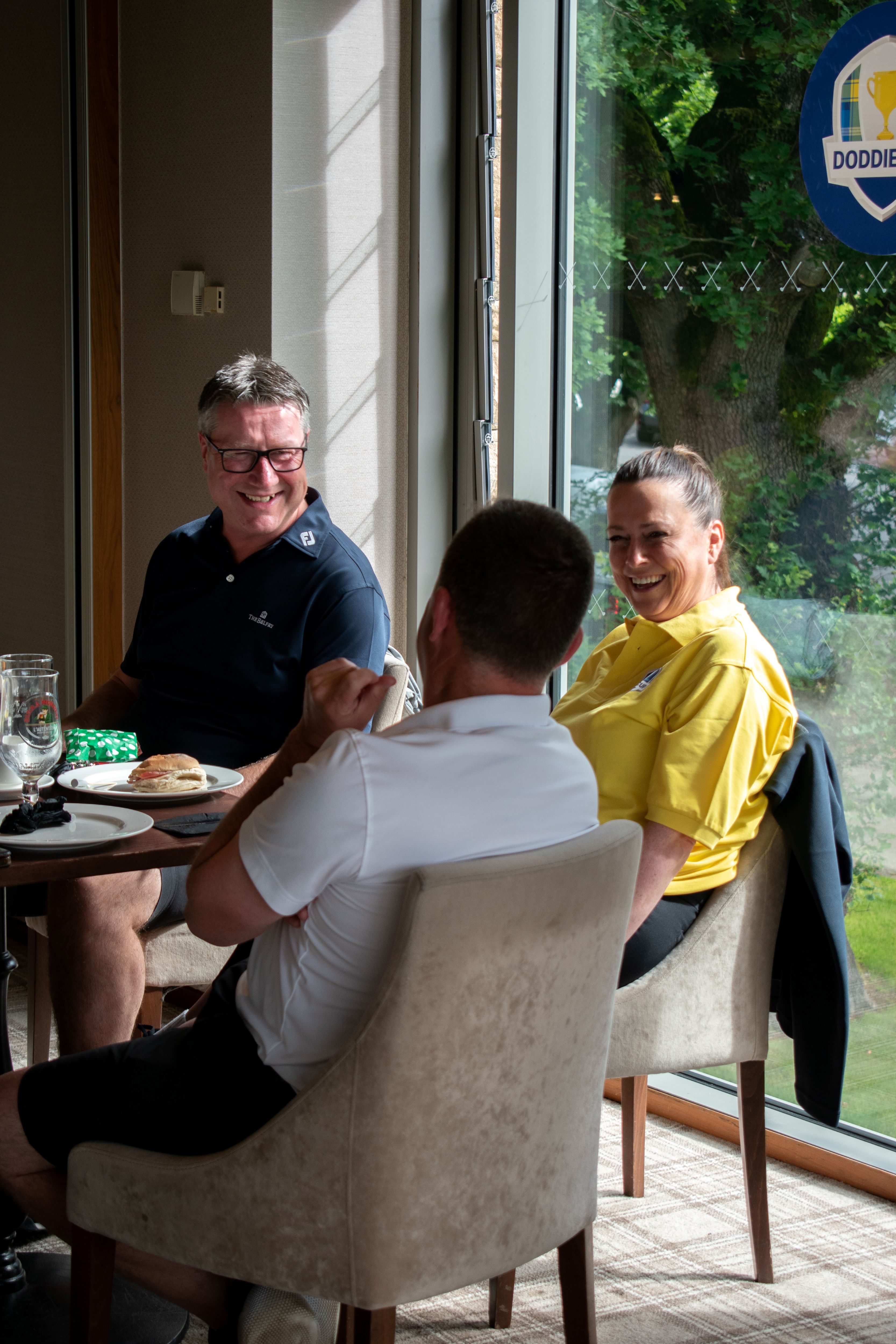 Before heading onto the course, participants purchased "Mulligan balloons" and gathered for a memorable group photograph on the iconic Close House bridge. The competitive spirit was palpable as results were fed back to the clubhouse, with the scores neck and neck for much of the event.