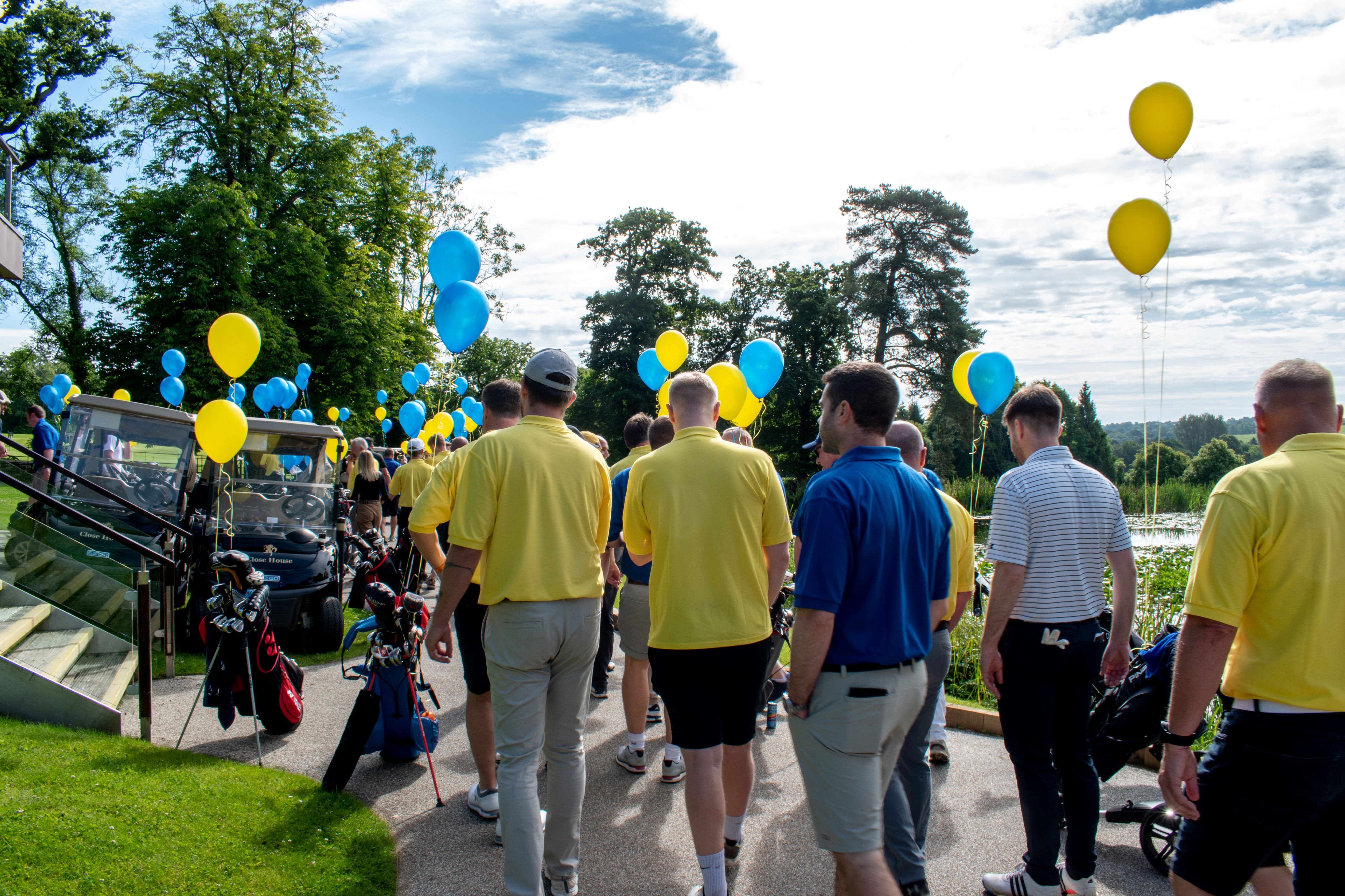 Out on the course, participants encountered several surprises, including a "beat the pro" themed hole, an inflatable dartboard challenge, and the chance to win a BMW with a hole-in-one—though no one managed to achieve this feat. Everyone also enjoyed some ice-cold refreshments while taking in the stunning views of Close House.