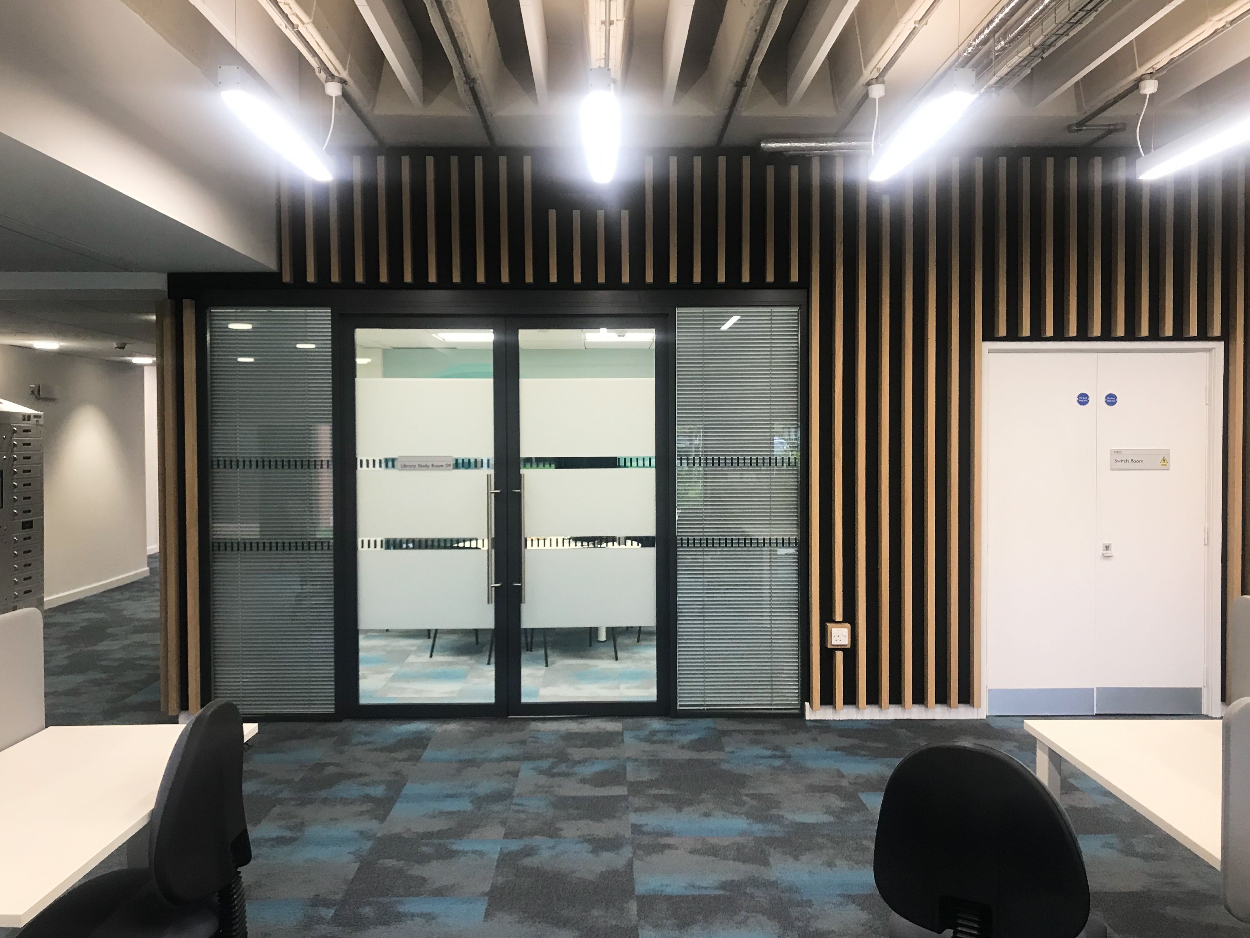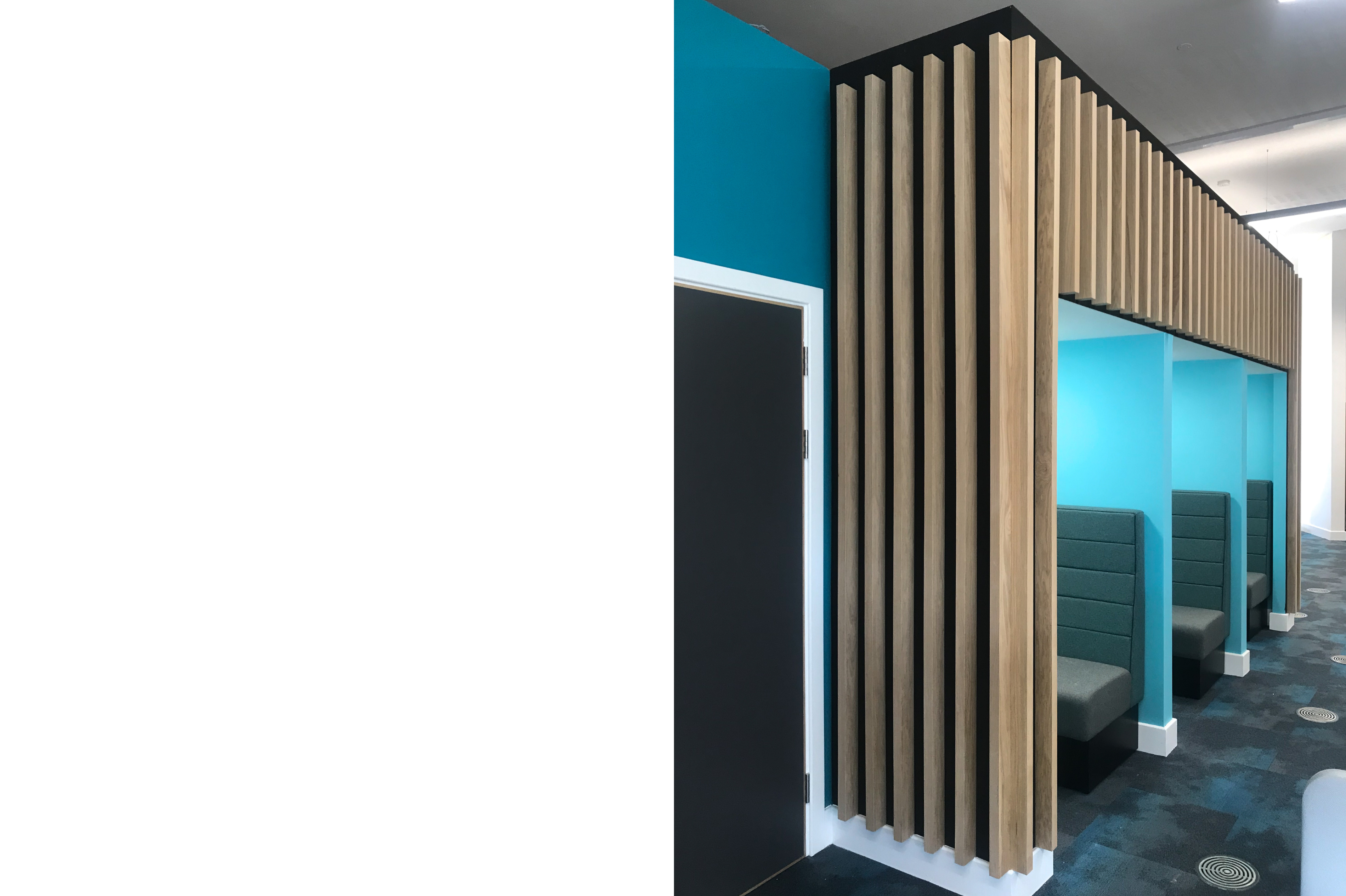The design and remodelling of Level 3 of the David Goldman Technology Centre have formed a library study hub ("spoke") to accommodate Art and Literature Collections as well as Open Study Areas, enclosed Study Rooms and Syndicate Rooms. This project, also delivered by contractor Brims Construction Ltd, successfully applied the new Integrated Campus Library concept to a much larger space with a more complex brief.