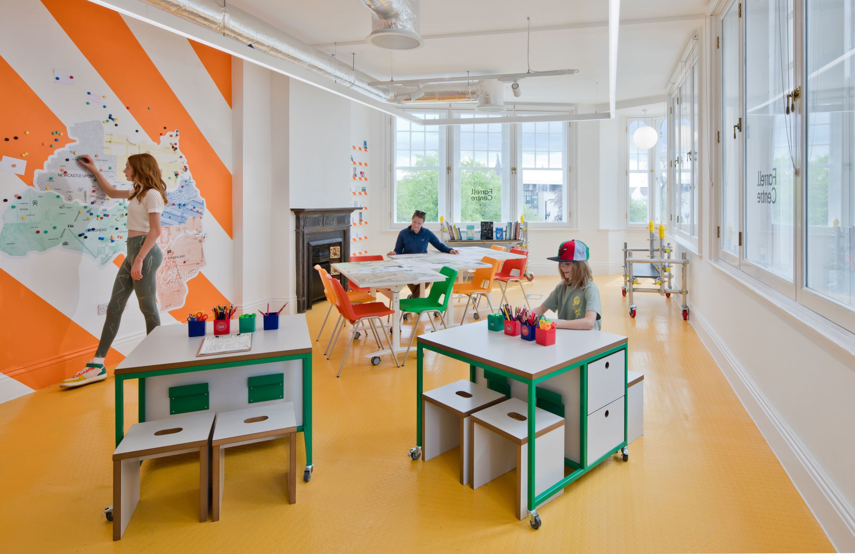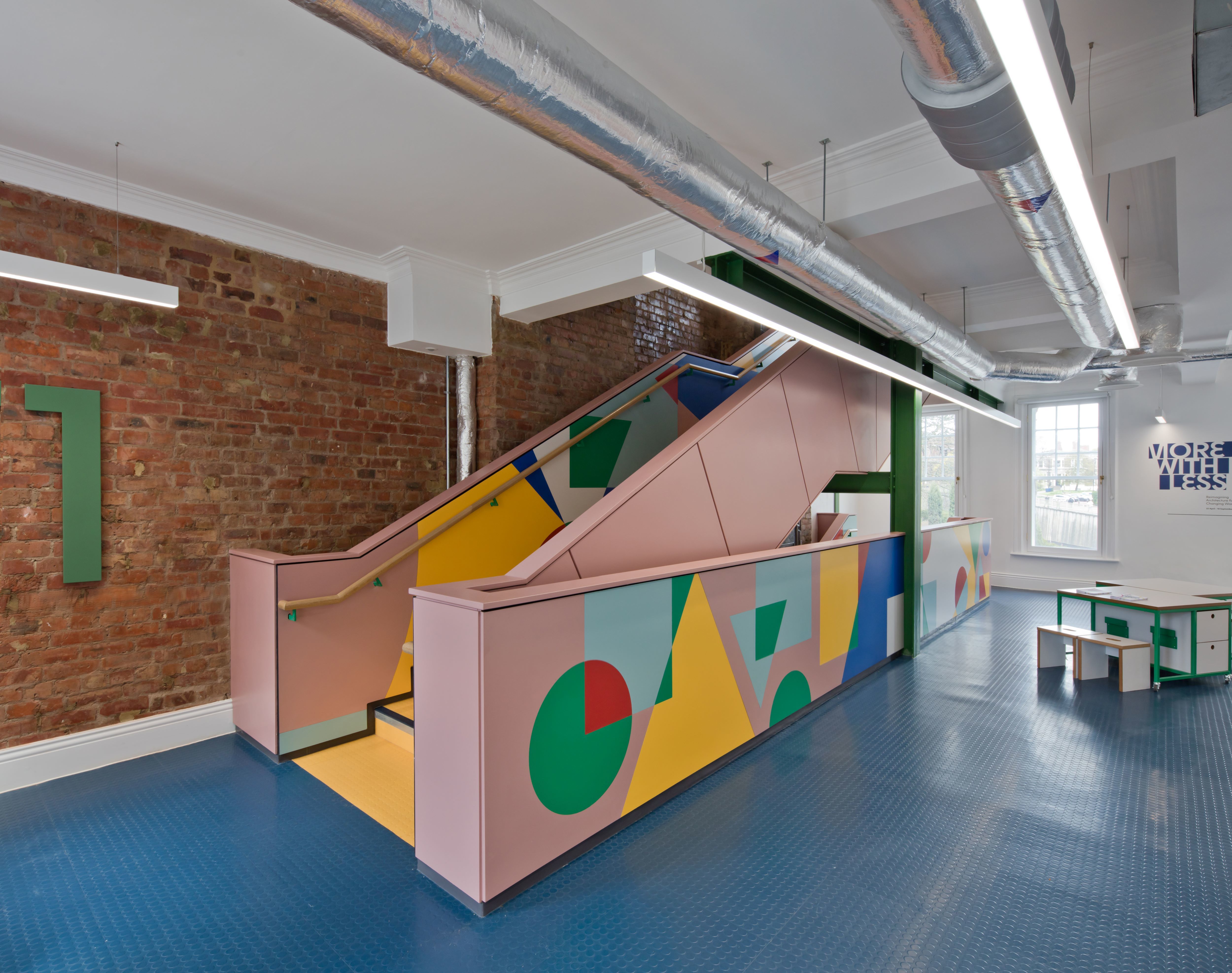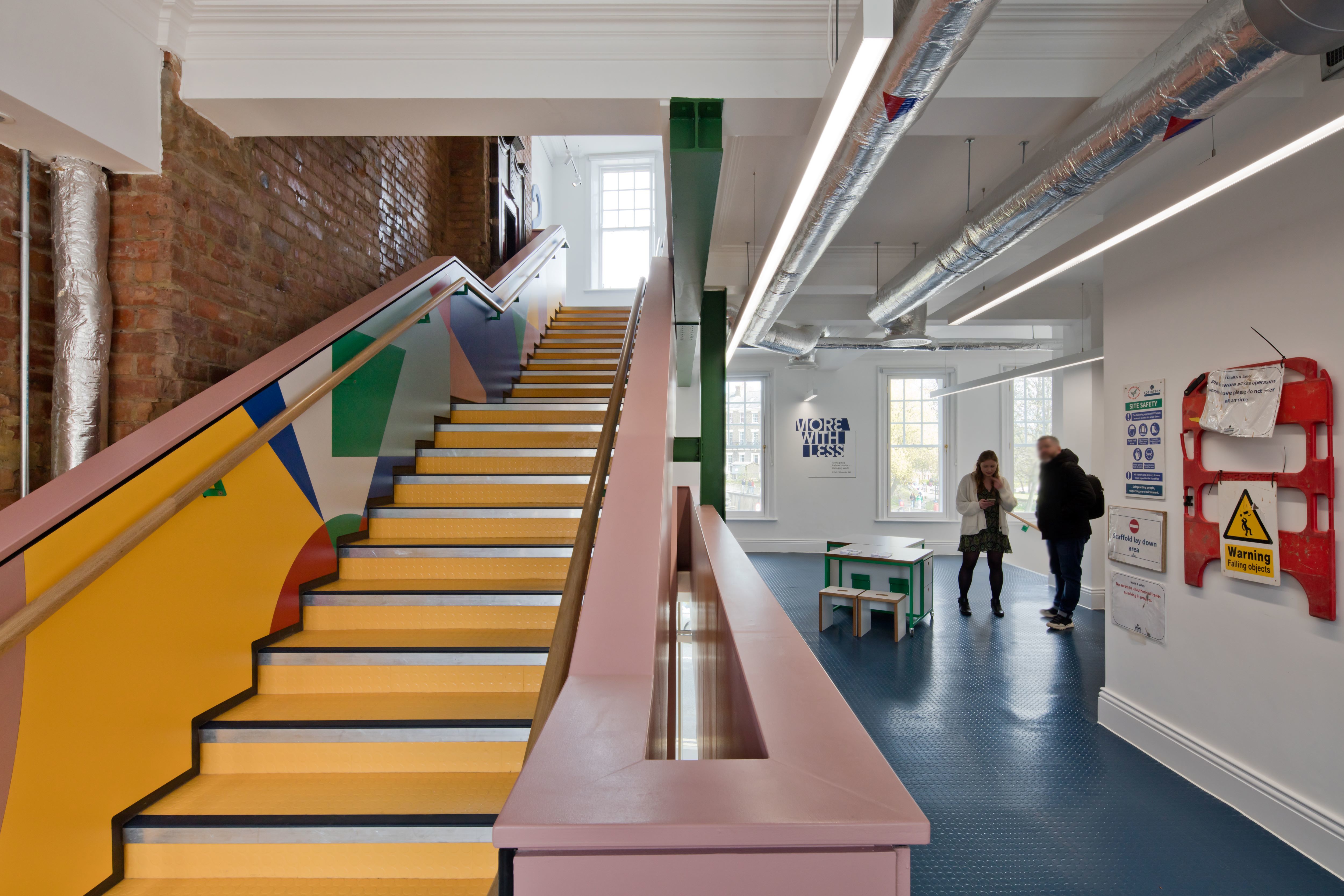 A new, brightly coloured feature accommodation staircase bisects the building, drawing visitors towards the gallery spaces and Urban Rooms to the upper levels reinforcing the key concepts of being welcoming, open and accessible to all. The areas within the building are layered, moving from public to private on the upper floors with the stair demonstrating how historic buildings can be creatively repurposed with a balance of contemporary intervention and sympathetic restoration.
