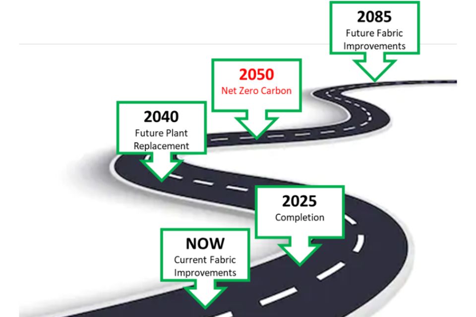 Therefore, on face-value, it might suggest that the refurbishment of existing buildings will not provide the required reductions necessary. However, the key to reducing the operational carbon emissions of a historic building is to try to put them on a pathway to net-zero carbon, recognising that the refurbishment of a building may present a once in a lifetime opportunity to upgrade the fabric of the building and that improving the building fabric may open up the opportunity to introduce low-temperature heating systems which can be provided with heat from heat pump technologies. The greening of the grid over time can then allow the building to achieve net-zero carbon (i.e. there will be no fossil fuel use within the building). There is, however, a balance to be achieved between capital costs, running costs and operational carbon emissions. The key is to take the opportunity to try to enable the building to run on low-temperature heating as, even if the capital is not available now to install heat pumps, gas boilers could be installed on day one and, when the plant is replaced in 10 to 15 years’ time, it will be possible to install heat pumps and remove the use of fossil fuels. This is likely to be helped by the fact that, during the elapsed time, the efficiency of heat pumps will probably also improve whilst associated capital costs may reduce.