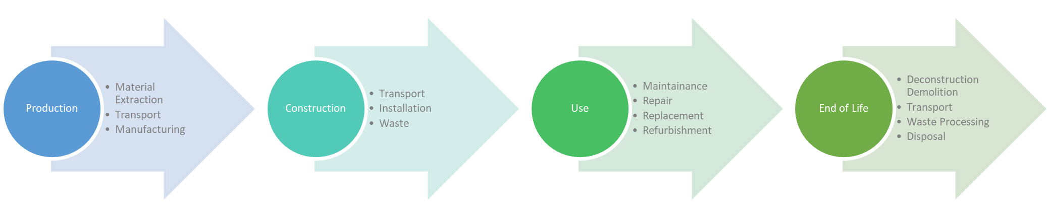 Embodied carbon is the resultant CO2 emissions from all the activities involved in the creation, use and demolition of a building. Embodied carbon measures a material’s CO2 emission through its complete lifecycle, from production, construction, use, and end of life.