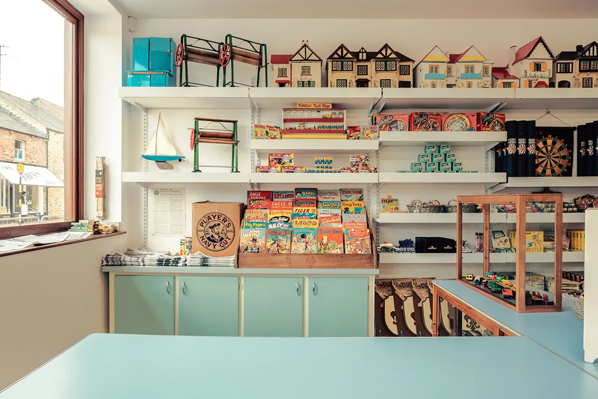 The toy shop, named after Romer Parrish's popular 1950s shop in Middlesbrough, was opened by his son, Brian Parrish. Visitors can explore the story of Romer Parrish, view toys from Beamish's collection, and purchase 1950s-style toys and games. Additionally, the Reece Ltd Radio and Electrical Services shop, named after North East engineer Alan Reece, offers a glimpse into 1950s appliances and music. Visitors can browse the latest 1950s gadgets in the showroom and listen to popular hits in the record shop's listening booths.