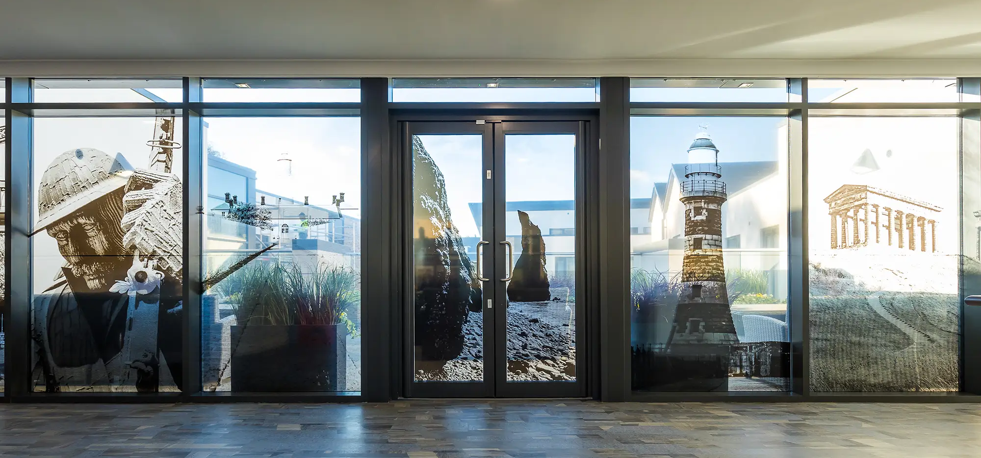 Sitting between village and church, Bede House strengthens Ryhope’s social fabric. The entrance frames a clear view of the church, grounding the building within its historic surroundings, while the glazed café and courtyard create an open frontage that invites connection with the street. Inside, artwork reflecting local landmarks brings the character of Ryhope and the wider region into the heart of the building, offering residents a sense of familiarity and place.