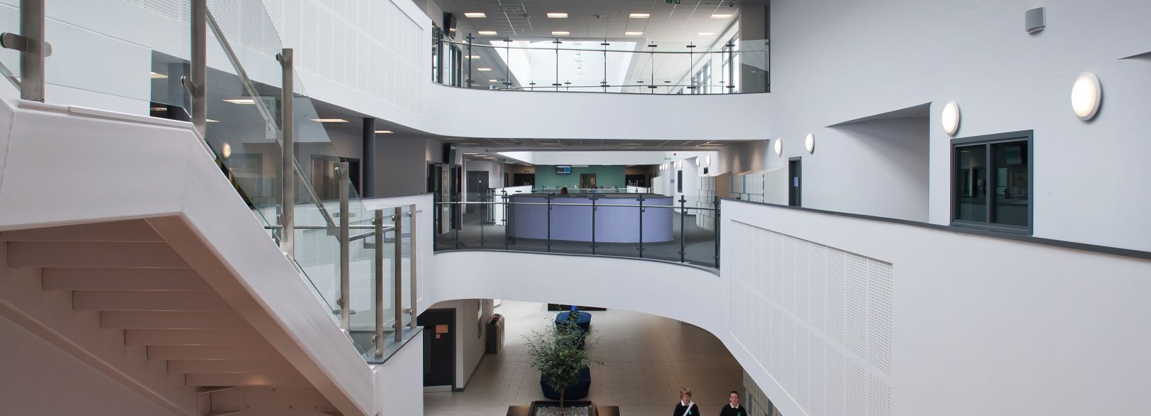 The building design reflects the needs of the students and supports the coherent community of the school. The school comprises three storeys of teaching accommodation organised around a high “agora” space, consisting of dining areas, break out/lead lesson areas, seminar rooms and staff facilities. The new design, within a high quality landscaped setting, brings a strong and significant piece of architecture to the west of Hull.