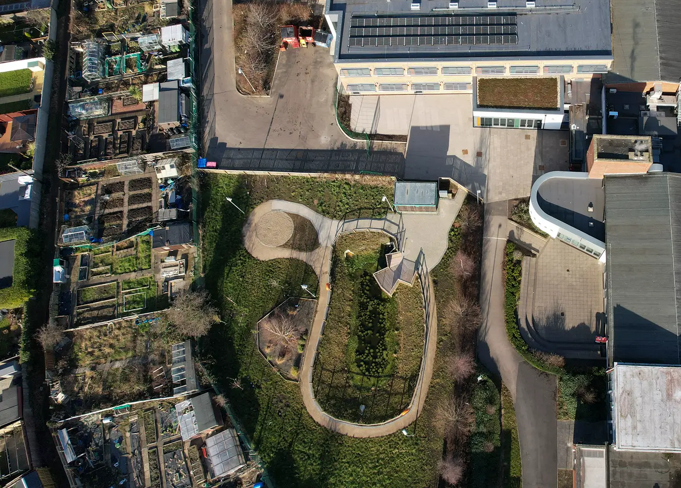 A wildflower roof and attenuation pond extend the school’s sustainable ethos into the landscape, managing rainwater naturally and supporting pollinators. Planting species were selected for their biodiversity value and woven into the curriculum, allowing pupils to observe and study ecological systems firsthand. Together, these measures demonstrate how architecture for learning can promote environmental literacy, turning the project itself into a living example of sustainable practice.