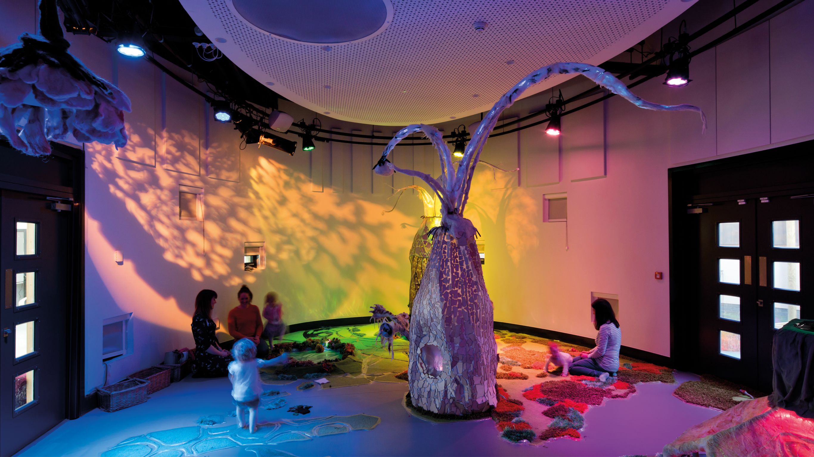 The accommodation includes a 150 seat flexible studio theatre space, a performing stage area of 6m by 6m, a foyer space with child-centred “pop-up” café and snack bar facilities, a creative play installation space with access to external play space, rehearsal space, dressing rooms, green rooms, back stage facilities, office space and gallery space within the café, foyer and elsewhere for child focused exhibitions.
