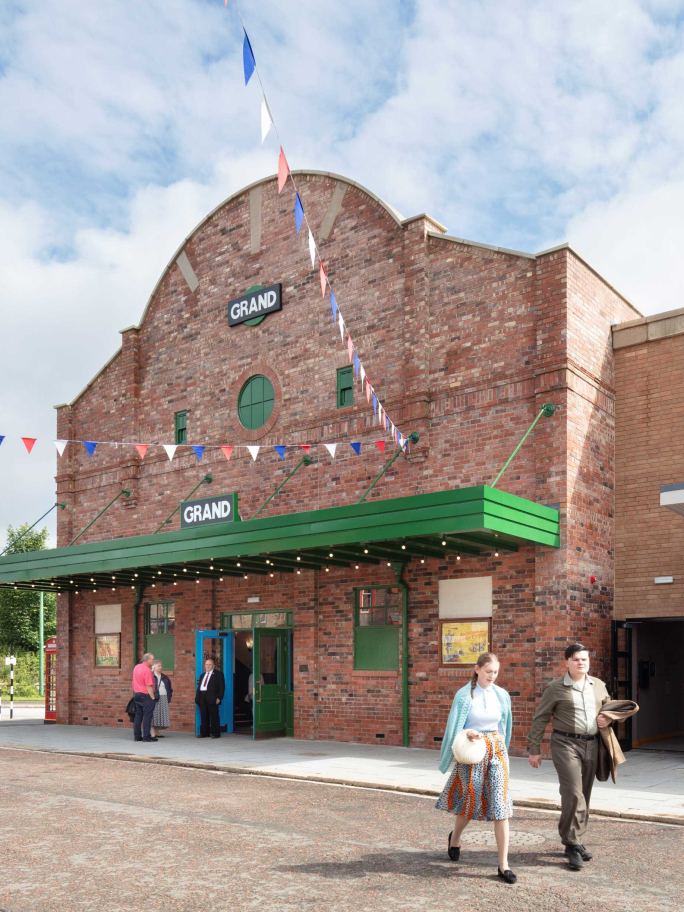 The Remaking Beamish project expanded the museum with a new 1950s Town while strengthening its early nineteenth-century offer. The centrepiece of the works is the recreated 1950s streetscape, built around Frank Atkinson’s belief that the museum should always include an exhibit within living memory. This vision led to the translocation and rebuilding of Ryhope’s Grand Cinema. It now sits alongside new 1950s shops, including an electrical shop, a toy shop and a record shop, as well as a milkbar and a STEM learning space. The project also added to the Georgian Landscape near Pockerley Old Hall. An existing outbuilding was converted into a fully functioning 1820s drovers’ tavern, and a rural pottery with a separate kiln was created to reflect early industry in the region. Two holiday cottages complete this part of the expansion.
